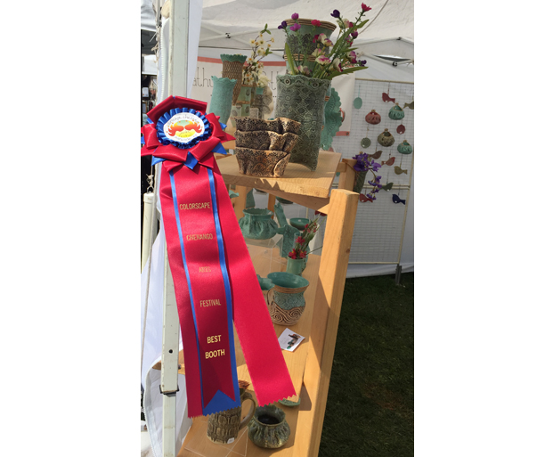 I’m so excited to have won the “best booth” award at Colorscape Chenango Arts Festival last weekend! It is a most wonderful show–very high quality work, and I really look forward to it every year. They feed us lunch both days and delicious breakfast at the local church on Sun. morning, and I stay for free with my wonderful hosts, Lori and Dan.  On top of that $200 came along with the award ribbon and my pic was in the local Oneonta Daily Star. I could go on and on…..