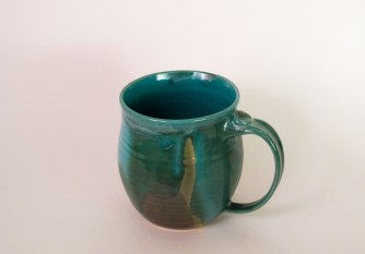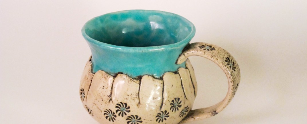 Light green porcelain 12 oz. mug with lace and stamped texture